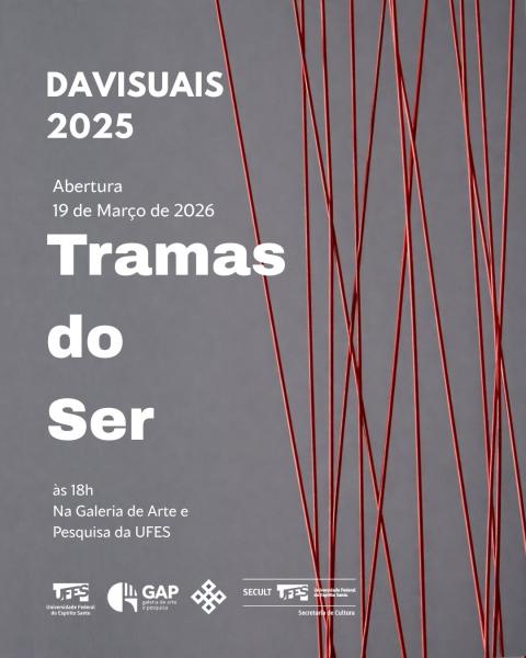 Com o tema Tramas do Ser, a exposição DAVisuais marca o início das atividades de 2026 da Galeria de Arte e Pesquisa (GAP) da Universidade Federal do Espírito Santo (Ufes). A abertura da exibição acontece no dia 19 de março, às 18h. Para participar da mostra, que é fixa no calendário da galeria, foram selecionados 19 trabalhos de 14 estudantes do Centro de Artes. Eles ficarão em cartaz até o dia 30 de abril.